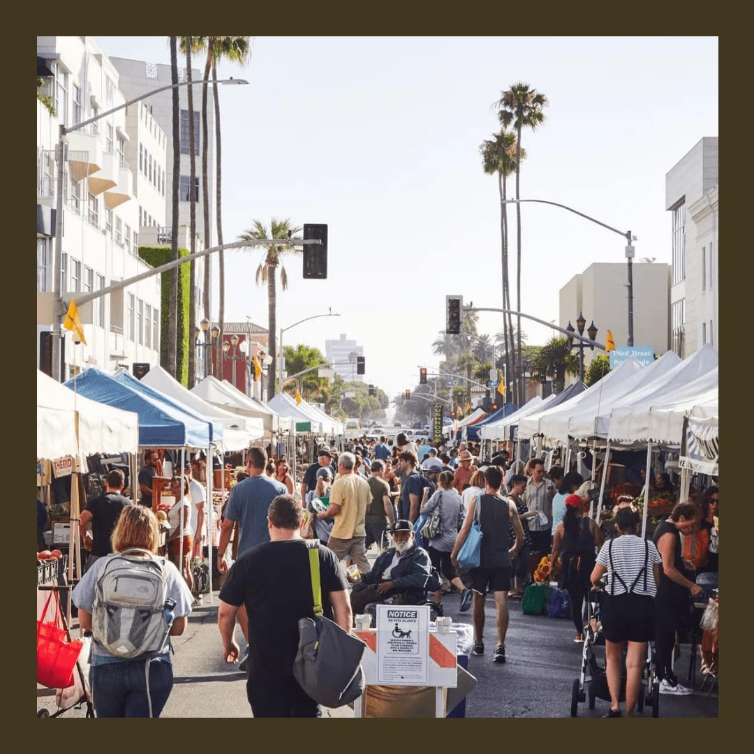 Mar Vista Certified Farmers’ Market is a bustling, transient town square that is open every Sunday from 9 a.m. - 2 p.m., rain or shine. It features numerous farmers making the trek from all over California to bring fresh- picked and dried fruit, nuts, berries, greens, mushrooms, veggies, grass-fed meats and cheeses, sustainably raised chicken, pork, lamb, and other offerings direct from the farm. Also offered are fresh-squeezed juices and sustainably caught, wild local seafood from the waters off California.